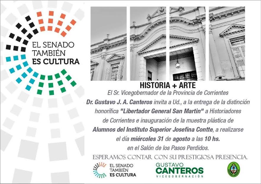 Este miércoles 31 a las 10 está programado en el palacio legislativo la entrega del reconocimiento honorífico "Libertador General San Martín" a los investigadores de la Historia correntina. Mientras que a las 11 quedará inaugurada en el Salón de los Pasos Perdidos la muestra plástica de alumnos del Instituto Josefina Contte.