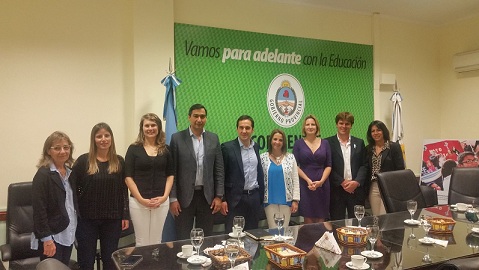 La jefa de operaciones de la Fundación Varkey, Kate Nobel, y el responsable de la misma en Argentina, Agustín Porres, visitaron este jueves por la mañana a la ministra de Educación de la Provincia, Susana Benítez. El encuentro contó además con la participación de los subsecretarios de Gestión Educativa, Julio Navías; de Gestión Administrativa, Mauro Rinaldi; y parte del equipo de capacitadores que desde junio trabaja con directivos locales.