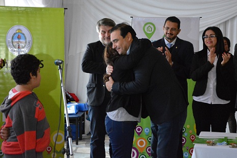 Durante la ceremonia, el diácono José Mariani realizó una invocación religiosa y bendijo las carpetas y llaves. Luego la beneficiaria Elena Galarza brindó palabras alusivas, expresando su felicidad por “poder darle un lugar para vivir a mi hijo” y su agradecimiento al Gobierno.
