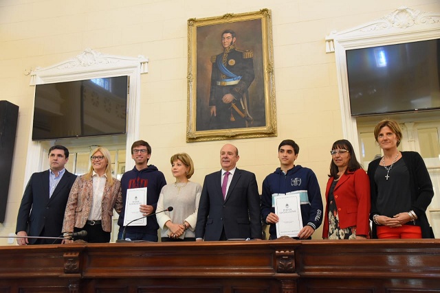 El vicegobernador Gustavo Canteros, junto a la senadora Nancy Sand, quien tuvo la iniciativa de realizar el reconocimiento, acompañados por las senadoras Nora Nazar, Carolina Martínez Llano, Rita Vanderland y el senador Victor Giraud, entregaron diplomas a los jóvenes.