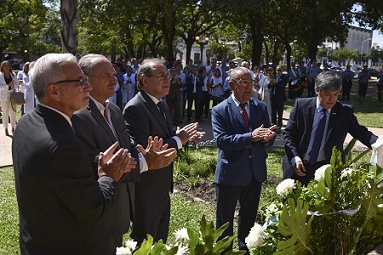 Eduardo Tassano encabezó el descubrimiento de una placa y la entrega de ofrendas florales ante el monumento en honor al doctor José Ramón Vidal, destacando así a los héroes civiles y a todos los trabajadores de la salud “porque realmente dan la vida por la profesión, dejando de lado muchas veces cosas importantísimas, como la familia”, valoró el intendente, durante el acto del que participaron el viceintendente, Emilio Lanari; el presidente del Colegio Médico de Corrientes, Walter Pilchik; el decano de la Facultad de Medicina, Omar Larroza y el exdirector del hospital Vidal, Esteban Ibáñez, entre otros.