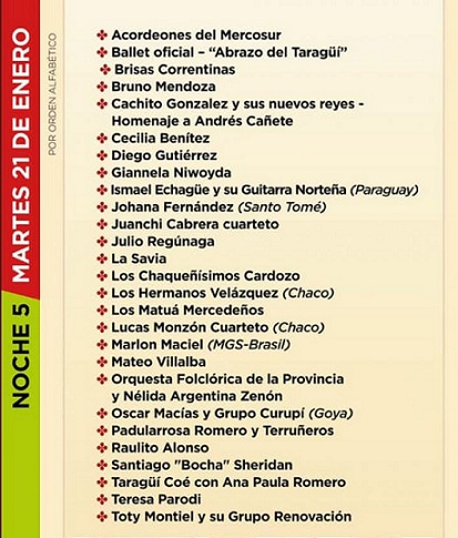 La Fiesta del Chamamé se celebra en el Anfiteatro Cocomarola, hasta el domingo 26 de enero. Conocé en esta nota los artistas que estarán en la segunda noche prevista para este martes 21.