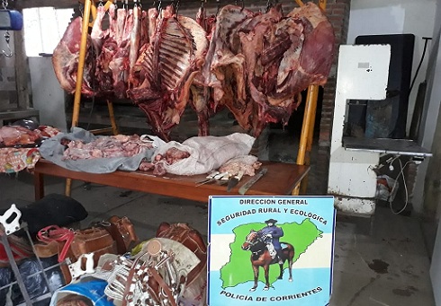 En el lugar secuestraron 660 kilos de carne bovina, tres frezeers, nueve cueros vacunos, cuatro aperos completos, una balanza carnicera, cuchillos, y un colgadero casero. El propietario del lugar no estaba al momento del allanamiento pero continúa la faz investigativa junto al Juzgado de Instrucción interviniente.