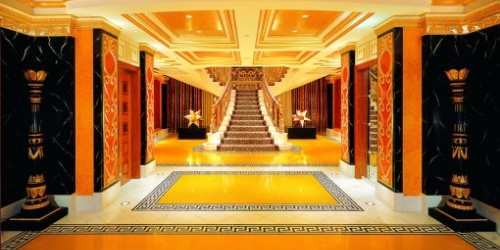 La Royal Suite del Hotel Burj Al Arab, en Dubai, Emiratos Árabes, cuesta 18.000 dólares y quien se hospede allí tiene derecho al helipuerto, traslado dentro de la ciudad en Rolls Royce y acceso al restaurante submarino. El hotel está sobre una isla artificial, tiene una altura de 321 metros y es el único de categoría siete estrellas del mundo.