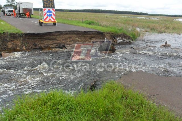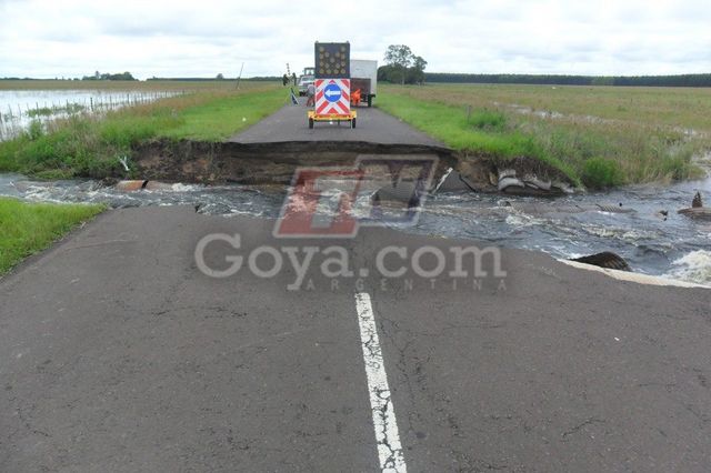 Un móvil de TNGoya.com, se traslado hasta el lugar donde el asfalto cayó a causa de las intensas lluvias. Las tuberías allí instaladas no aguantaron la fuerza del agua lo que hizo derribar parte de la ruta 12. El lugar se encuentra a unos 30 kilómetros de Goya y cortó totalmente el tránsito por la misma. Quienes deseen ir hacia Perugorría, deberán hacerlo entonces por 9 de Julio.