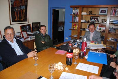 El intendente de Monte Caseros Eduardo Galantini, junto a sus pares de Juan Pujol, Sergio Dalzotto y de Colonia Libertad, Faustino Roballo; mantuvieron una reunión con el ministro de Obras Públicas de la Provincia, Aníbal Godoy con el fin de avanzar en la distribución del dinero de los excedentes de Salto Grande que será destinado a obras en los distintos municipios.