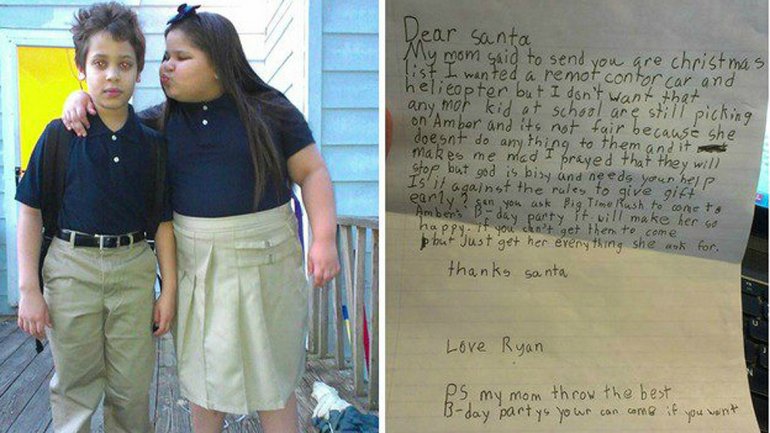 "Los niños en la escuela siguen molestando a Amber y no es justo", escribió Ryan en su carta a Santa Claus. Su madre se conmovió ante el deseo de su hijo