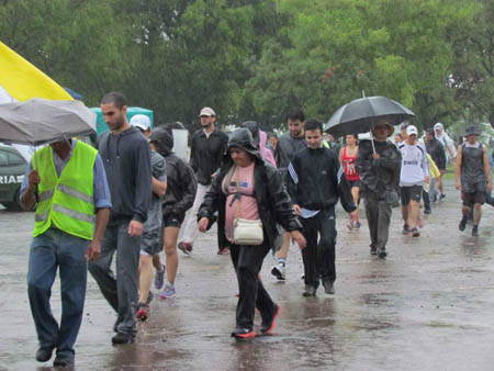 Fueron 500 los peregrinos universitarios los que concentraron en el Campus “Deodoro Roca” de la ciudad de Corrientes y se encaminaron hacia la Basílica de Nuestra Señora de Itatí bajo el lema “La comunidad universitaria camina, llevando la cruz, hacia las puertas de la fe”. “Llegamos a los 600 inscriptos para esta edición, pero el mal tiempo hizo que haya una baja considerable” comentó Mariana Benítez, integrante de la Comisión de Evangelización de la Comunidad Universitaria de la UNNE. La coordinadora explicó que a pesar de contar con asistencia Policial, de Gendarmería y la colaboración de Inspectores de Tránsito, los caminantes se vieron obligados a avanzar bordeando la ruta, sobre la cinta asfáltica “resultaba imposible hacerlo por la banquina debido al barro intransitable que generó la copiosa precipitación de toda la mañana” explicó.