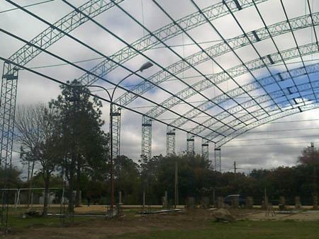 Comprometidos con posibilitar el primer predio deportivo techado para los lugareños, la Provincia avanza a buen ritmo con los trabajos que en una primera etapa concretarán: playón, techado e iluminación; mientras que en una segunda fase se realizará el cerramiento lateral, los baños y vestuarios.