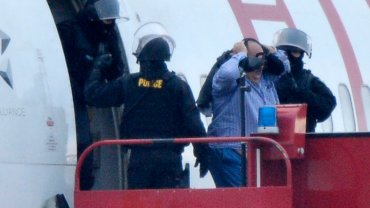 Hay imágenes en las que se puede ver a los 200 pasajeros descendiendo del avión uno por uno ante la estricta vigilancia de la policía local. El aparato, un Boeing 767, aterrizó en el aeropuerto de la ciudad suiza alrededor de las 06:20 hora local (05:20 GMT).