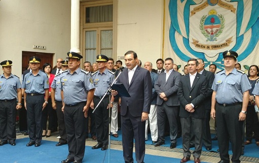 Información General | El Gobernador de Corriente, Dr. Gustavo Valdés, encabezó el acto de recambio de la cúpula policial y tomó juramento a los nuevos jefes. Adelantó que se gestionarán nuevas inversiones en equipamiento e infraestructura para los agentes policiales.