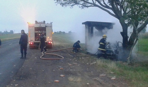 Información General | La fatalidad se produjo anoche alrededor de las 21 horas, sobre Ruta 12, kilómetro 973. La colisión involucró a un Volkswagen Fox que era conducido por Álvarez y quien iba acompañado por dos hombres de apellido Álvarez (65), Álvarez (53) y una mujer de apellido Vallejos. El cual primeramente habría colisionado de frente con un camión marca Ford y luego impactó contra un camión Escania y una camioneta marca Toyota Hilux. El conductor del un Volkswagen Fox murió en el lugar.