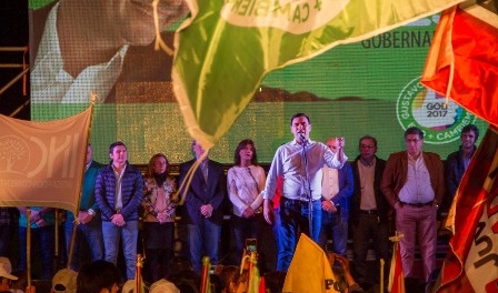 Información General | Los principales líderes y candidatos de ECO+Cambiemos se mostraron triunfalistas ante una multitud que este sábado se convocó en el barrio Mil Viviendas de la Capital. Allí fueron oradores en un acto, Gustavo Valdés, Ricardo Colombi, Gustavo Canteros y Eduardo Tassano, coincidiendo en que repetirán este 8 de octubre el resultado con el cual derrotaron al kirchnerismo, el pasado 4 de junio en el mayor distrito electoral de la provincia.