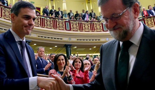 Internacionales | Punto final para el mandato de Mariano Rajoy. El Congreso español aprobó su destitución, al votar favorablemente una moción de censura presentada por el opositor socialista Pedro Sánchez, quien será su sucesor en la presidencia del Gobierno. La propuesta de Sánchez se impuso con 180 votos a favor, 169 en contra y una abstención. La iniciativa del líder del PSOE contó con el respaldo del arco opositor, incluidos catalanes y vascos.