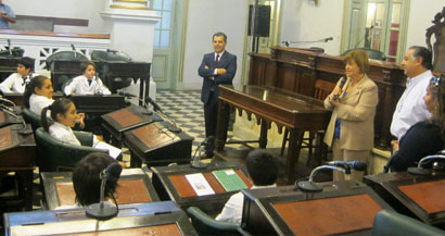 Política | Alumnos del 6° grado de la Escuela 962 del Barrio Pirayuí visitaron la Honorable Cámara de Diputados, siendo recibidos por el Presidente del Cuerpo Parlamentario Pedro Cassani, y la Diputada Marly Brisco; quienes le brindaron una charla sobre el funcionamiento legislativo, y respondieron inquietudes.