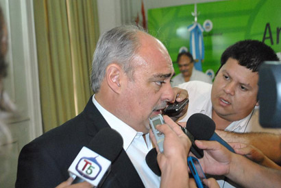 Política | El mandatario provincial tras participar del acto de firma del convenio con la empresa que ejecutará la obra de interconexión eléctrica entre Monte Caseros y Colonia Libertad a través de una línea de 33 kilovatios, formuló declaraciones a los medios de prensa presentes en el evento.