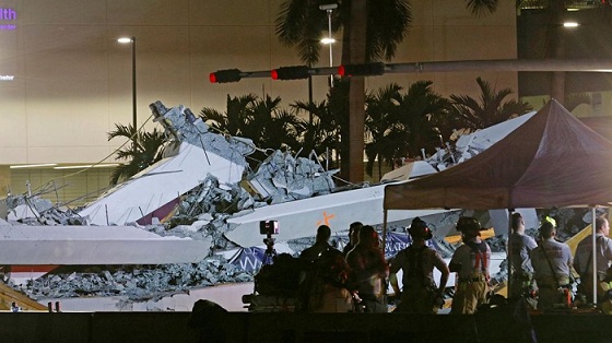 Internacionales | Un puente peatonal en construcción se derrumbó este jueves y cayó sobre una autopista de seis carriles: cuatro personas murieron y ocho resultaron heridas. El puente, de 950 toneladas y más de 50 metros de largo, estaba situado sobre la calle Ocho a la altura de la Avenida 109 y conectaba la Florida International University (FIU) con la localidad de Sweetwater.