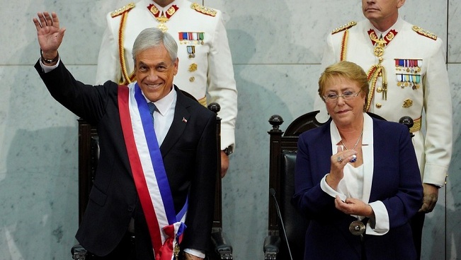 Internacionales | El acaudalado empresario Sebastián Piñera liderará por segunda vez un Gobierno de derecha en el país después de cuatro años de la administración de la socialista Michelle Bachelet. El conservador Sebastián Piñera juró como presidente de Chile. El acaudalado empresario Sebastián Piñera juró hoy domingo como presidente de Chile y liderará por segunda vez un Gobierno de derecha en el país tras el fin de la dictadura de Augusto Pinochet, en 1990, y después de cuatro años de la administración de la socialista Michelle Bachelet.