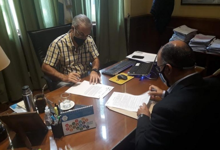 Interior | El ministro de Producción, Ing. Claudio Anselmo, en su carácter de presidente del IFE-SEM, y el intendente de Caá Catí, Jorge Meza, suscribieron ayer (jueves 18 de junio) un convenio de cooperación a través del cual se habilita la compra de una nueva cámara de frío para el renovado Frigorífico-Matadero Municipal de esa comuna. La planta, que apunta a ser para faena multiespecie, fue habilitada recientemente y, con esta gestión, se da otro paso hacia la consolidación de la actividad ganadera en esa zona del norte provincial.