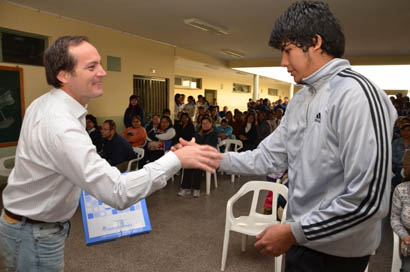 Política | El intendente Camau Espínola anunció la colocación de wi-fi en la plaza central Joaquín Madariaga del barrio Laguna Brava, donde, invitado por la Administración Nacional de Seguridad Social (ANSES), hizo entrega de 381 netbooks del Programa Conectar Igualdad al colegio secundario José Hernández.