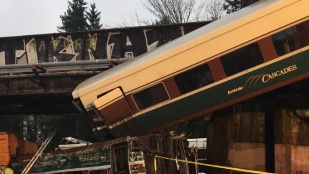 Internacionales | Una formación de la compañía Amtrak, que hacía un recorrido entre Seattle y Portland, tuvo un accidente y un vagón quedó colgando sobre una autopista interestatal. También se registran decenas de heridos. Un tren de pasajeros descarriló sobre una autopista en el estado de Washington, dejando colgado a un vagón de la formación sobre el puente de la vía, cerca de la ciudad de Tacoma. Las autoridades indicaron que hay, hasta el momento, al menos seis muertos y decenas de heridos, según consigna Fox News.