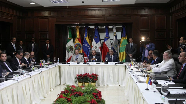 Internacionales | Simón Calzadilla, uno de los negociadores de la Mesa de la Unidad Democrática (MUD), indicó que la oposición continuará "trabajando, evaluando, planificando" para alcanzar el mejor acuerdo para Venezuela. Las negociaciones con el chavismo en República Dominicana se retomarán el próximo 15 de diciembre. Tras los encuentros celebrados el pasado viernes y sábado en República Dominicana, la oposición venezolana informó este domingo que buscará sellar un acuerdo político y humanitario en el proceso de diálogo con el régimen militar de Nicolás Maduro.