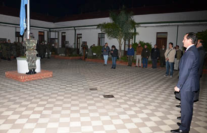 Política | En la Guarnición Militar Corrientes, el Intendente, Carlos Mauricio ´Camau´ Espínola, participó hoy del izamiento de la Bandera en la conmemoración del Día de la Independencia oficiada por el Ejército. Recibió el saludo del Jefe de la Guarnición, Teniente Julio Aguilera Piragine y compartió luego el chocolate patrio organizado en el aula General Belgrano.