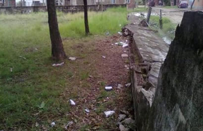 Política | Técnicos del Ministerio de Educación se encuentran trabajando en la Escuela Luis Federico Leloir donde durante la jornada de ayer se derrumbó parte del muro perimetral. La caída fue producto de las lluvias que debilitaron el cimiento.