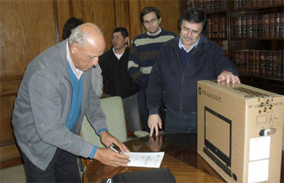 Política | Pueblo Libertador recibió hoy equipamiento para avanzar con la organización de su catastro y posteriormente la planificación del desarrollo de su pueblo. El Intendente y el Ministro de Hacienda coincidieron en que el proceso encarado ya en casi 20 Municipios sería mucho más profundo de accederse al financiamiento que gestiona el Ejecutivo y que necesita del aval legislativo.