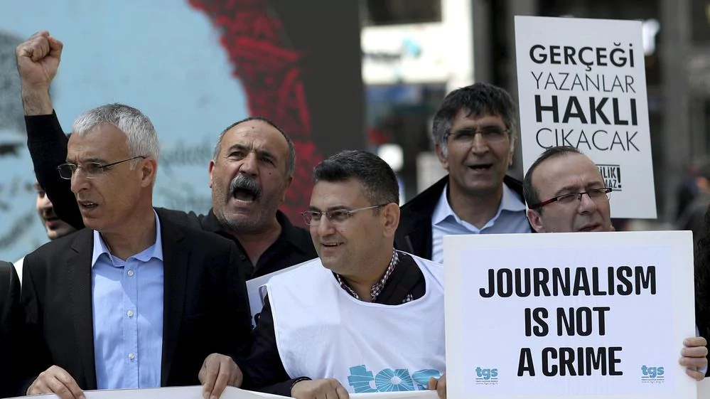 Internacionales | Diecisiete reporteros del diario Cumhuriyet esperan condena por supuestos vínculos con el clérigo Fethullah Güllen. Señalan que las acusaciones están sostenidas sobre bases muy poco firmes. Una llamada de teléfono para pedir una pizza es uno de los motivos por los que un periodista está siendo juzgado en Turquía, acusado de "colaboración con una organización terrorista", denunció el miércoles el diario Cumhuriyet.