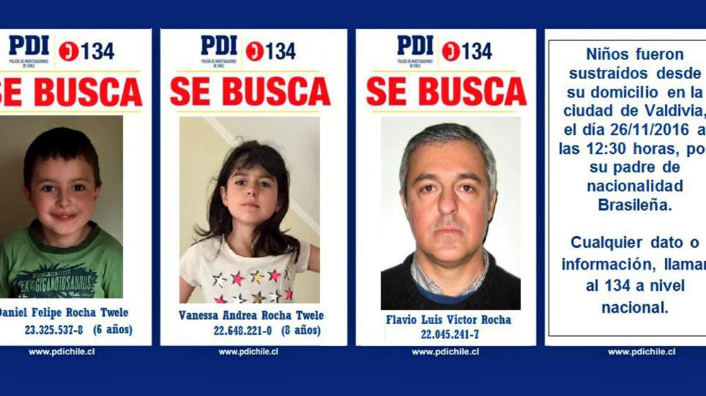 Internacionales | Los menores, de 6 y 8 años, desaparecieron el sábado después de la visita del padre, un ciudadano brasileño con antecedentes policiales por motivos similares. La madre de los niños solicitó que cualquier información al respecto se avise de inmediato a las autoridades argentinas y chilenas. Un hombre brasileño que secuestró a sus hijos de 8 y 6 años en la ciudad chilena de Valdivia cruzó ayer Argentina por un paso fronterizo y se dirige posiblemente a San Pablo, dijo la ex mujer y madre de los niños y rogó a medios y autoridades locales que difundan sus fotos para poder recuperarlos.