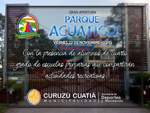 Interior | Desde la Secretaría de Deportes y Recreación de la Municipalidad de Curuzú Cuatiá, informan a la ciudadanía, que este viernes 22 a las 12 horas, se procederá a realizar la apertura de la temporada 19/20 del Parque Acuático.