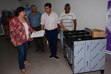 Interior | En el marco de una articulación entre el gobierno municipal y provincial, la Subsecretaría de Industria de la Provincia, a cargo del contador Edgar Benítez, hizo entrega, en la mañana de este lunes, de una cocina industrial de seis hornallas para la familia Irase que padeció un siniestro, también entregó un juego de 82 vajillas completas para un emprendimiento gastronómico, y un subsidio para materiales del curso de auxiliares de gasistas que se está desarrollando en la Oficina de Empleo.