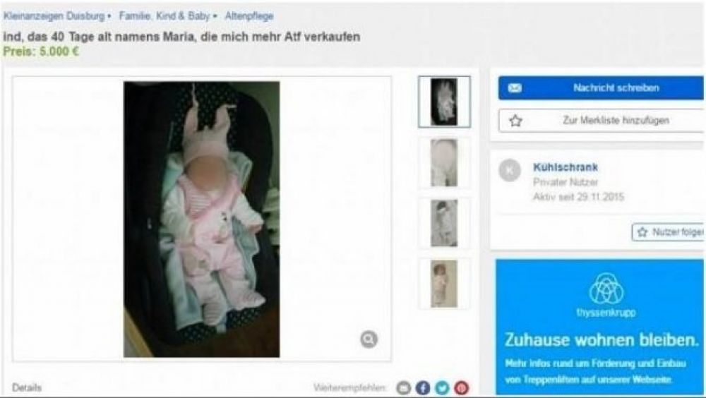 Internacionales | La oferta fue publicada en la versión europea de la Web especializada en la compra venta online de productos. Pedían unos $75 mil por una critatura de apenas 40 días de vida.