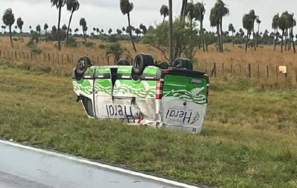 Policiales | Una combi perteneciente a una empresa de transporte de encomiendas protagonizó ayer un espectacular vuelco sobre Ruta 12, cerca de Mantilla y bajo una lluvia torrencial. De milagro no hubo heridos de gravedad.