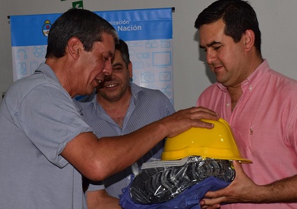 Interior | En horas de la tarde de este martes, el intendente municipal José Irigoyen, acompañado por el viceintendente Guillermo Morandini y el director de Empleo Martín Montero, hizo entrega de indumentaria para los futuros técnicos auxiliares de instaladores domiciliarios de gas que se encuentran participando del curso en la Escuela de Oficios de la Municipalidad de Curuzú Cuatiá.