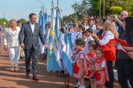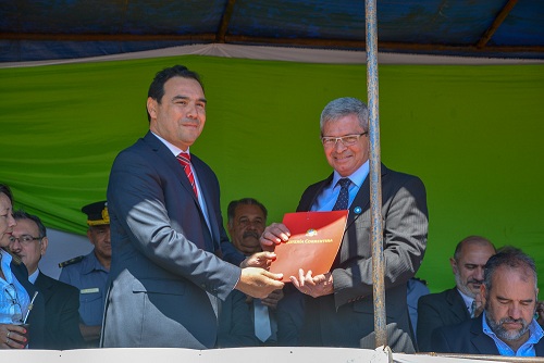 Interior | Para terminar una nueva recorrida por el noroeste provincial, el gobernador Gustavo Valdés encabezó este viernes por la tarde los festejos por el 142º aniversario de San Carlos y aprovechó la oportunidad para inaugurar junto a la intendente anfitriona, Graciela Larraburu, la plazoleta de “La Biblia” que se encuentra en el acceso a la localidad.