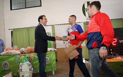 Interior | Para finalizar la jornada en cuanto a sus actividades oficiales, el gobernador Gustavo Valdés inauguró este jueves el nuevo edificio del Registro Civil de las Personas Delegación Esquina. Asimismo, también entregó un tablero electrónico y un subsidio por 400 mil pesos a la Sociedad Sportiva, para continuar con las obras en el club que consisten en la construcción de nuevos vestuarios.