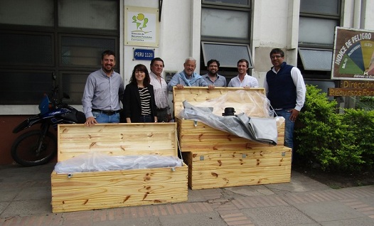 Interior | Con el objetivo de equipar los medios aéreos utilizados en el combate contra incendios, el ministro de Producción Jorge Vara entregó hoy cuatro tanques flexibles con capacidad de carga de 20.000 litros de agua, para ser ubicados en las distintas pistas empleadas por los aviones hidrantes en el trabajo contra el fuego.