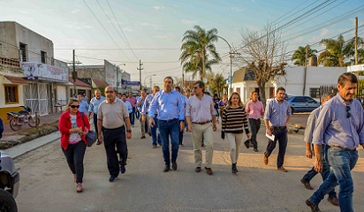 Interior | El gobernador Gustavo Valdés recorrió ayer junto al intendente Ignacio Osella, trabajos de pavimentación en las calles Rolón, Jujuy, Belgrano y José Gómez de Goya. El Mandatario provincial aseguró que así “estamos dando los primeros pasos en la recuperación” de la ciudad y pidió acompañamiento a los goyanos para “no perder esta oportunidad de seguir haciendo crecer” a esta localidad con el apoyo del Gobierno nacional. En este marco, anunció más pavimento e infraestructura deportiva, asegurando que “estamos por el buen camino”.