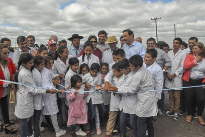 Interior | El gobierno provincial avanza con su proyecto de mejorar la vía de comunicación en la zona rural de la provincia, en este caso se trató del sector centro-noreste, que fue beneficiado con el plan de enripiado y desagües que se lleva adelante en todo el territorio correntino, se trata la Ruta Provincial 6 desde la Ruta también Provincial 10, hasta el arroyo Pelón, paraje que fue escenario del acto inaugural de la mencionada obra.