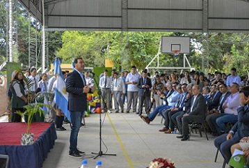 Interior | Luego de pasar por el paraje Ingenio Primer Correntino donde habilitó el Centro de Salud y la Comisaría, el gobernador Gustavo Valdés se dirigió en la mañana de este miércoles hasta la localidad de Santa Ana de los Guácaras, para dejar inaugurado el Playón Polideportivo y el tanque de agua de 15 mil litros del Colegio “Escribano Pedro Leconte”. En ese sentido, el Mandatario provincial dijo que “necesitamos tener una juventud sana y vigorosa para salir y forjar una mejor sociedad”.