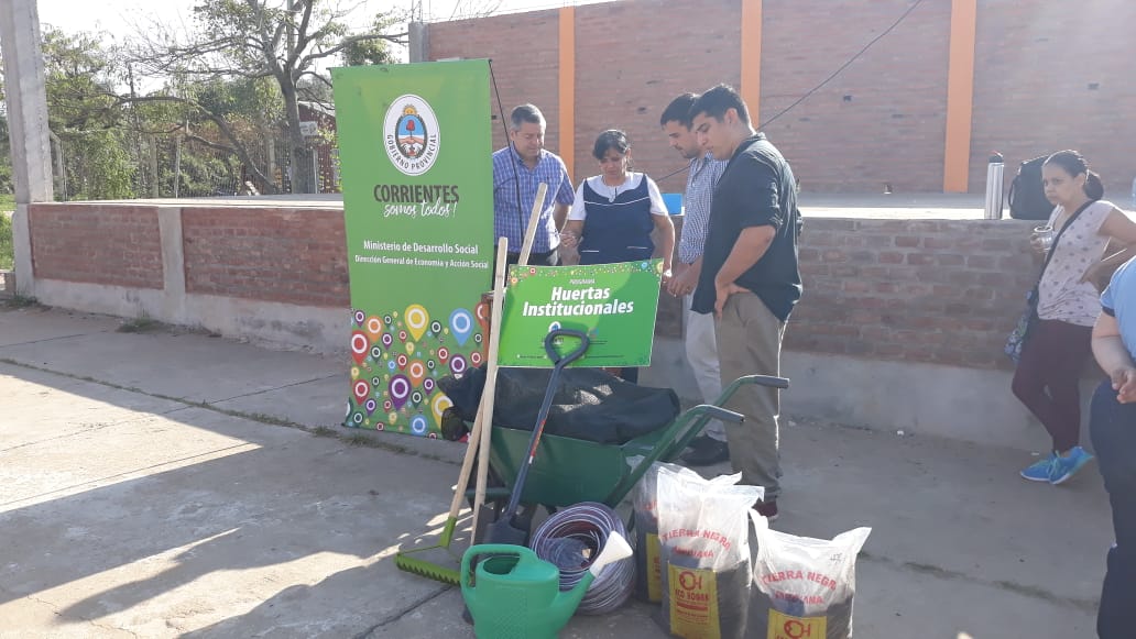 Interior | En forma seria y responsable se continúa avanzando con la incorporación de establecimientos escolares al Programa Huertas Institucionales, este lunes 15 por la mañana se entregó herramientas y media sombra a una escuela de Paso de la Patria.
