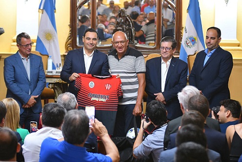Información General | Ratificando que el deporte es política de Estado, el gobernador Gustavo Valdés encabezó esta mañana la entrega de indumentaria deportiva a los 30 clubes afiliados a la Liga Correntina de Fútbol, entidad que aglutina en sus distintas categorías a 14 mil jugadores amateurs y que durante cada fin de semana despliega alrededor de 150 partidos, por lo que cada pelota y camiseta simboliza un apoyo fundamental para el trabajo social que se realiza en cada barrio de la Capital. Lo otorgado apunta a mejorar las condiciones de entrenamiento y competencia de sus deportistas.