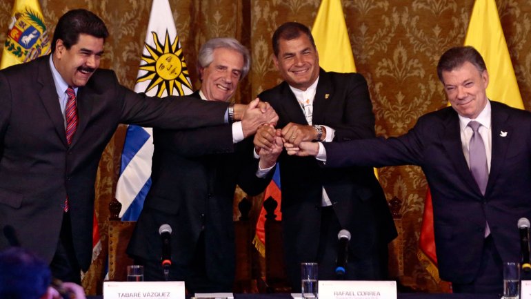 Internacionales | "Triunfó la sensatez", señaló Nicolás Maduro, tras la cumbre en la que ambos países determinaron el "retorno inmediato de los respectivos embajadores". Juan Manuel Santos calificó el diálogo de "respetuoso y productivo". Colombia y Venezuela acordaron el lunes restablecer el diálogo diplomático y la "normalización progresiva" de la frontera común, tras los cierres dispuestos por Caracas que hace un mes desataron una severa crisis bilateral, al término de un encuentro en Quito de los presidentes Nicolás Maduro y Juan Manuel Santos.