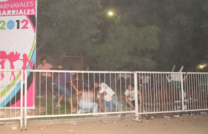 Información General | Un hecho violento y bochornoso ocurrió en la madrugada de hoy, precisamente a las 3:15 horas cuando grupos de jóvenes se enfrentaron a botellazos en el barrio Fray José de la Quintana cuando se desarrollaba la segunda noche de los Corsos Barriales 2012.