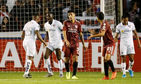 Deportes | El local hizo pesar la experiencia y la adaptación a la geografía: se impuso con los goles de Franklin Guerra, Martínez Borja y Junior Sornoza, de penal. Fue expulsado Enrique Bologna