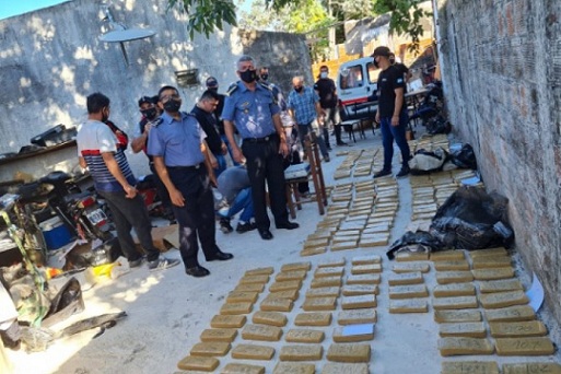 Policiales | En un procedimiento realizado ayer, la policía incautó cerca de 300 kilos de marihuana. Luego de arduos trabajos investigativos y mediante una orden de allanamiento se llegó a un domicilio ubicado en la zona del asentamiento del Barrio Pirayui (conocido como Barrio Tutuca), donde fue encontrada la sustancia.