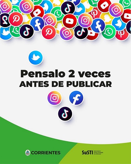 Información General | El Gobierno de Corrientes a través de la Subsecretaría de Sistemas y Tecnologías de la Información (SUSTI), difundió una serie de recomendaciones para hacer un uso correcto de las redes sociales. De esta manera, señalaron desde el área: “pensalo 2 veces antes de publicar”.