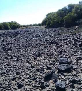 Información General | La fotografía muestra cómo se encuentra por éstos días el río Miriñay a la altura del departamento de Curuzú Cuatiá. Lo que siempre es un caudaloso cauce de agua, con sectores de profundidad de hasta 5 metros en promedio, hoy es un extenso lodazal con muchas piedras que quedan en la superficie. Lugareños aseguran que nunca observaron una situación similar.
